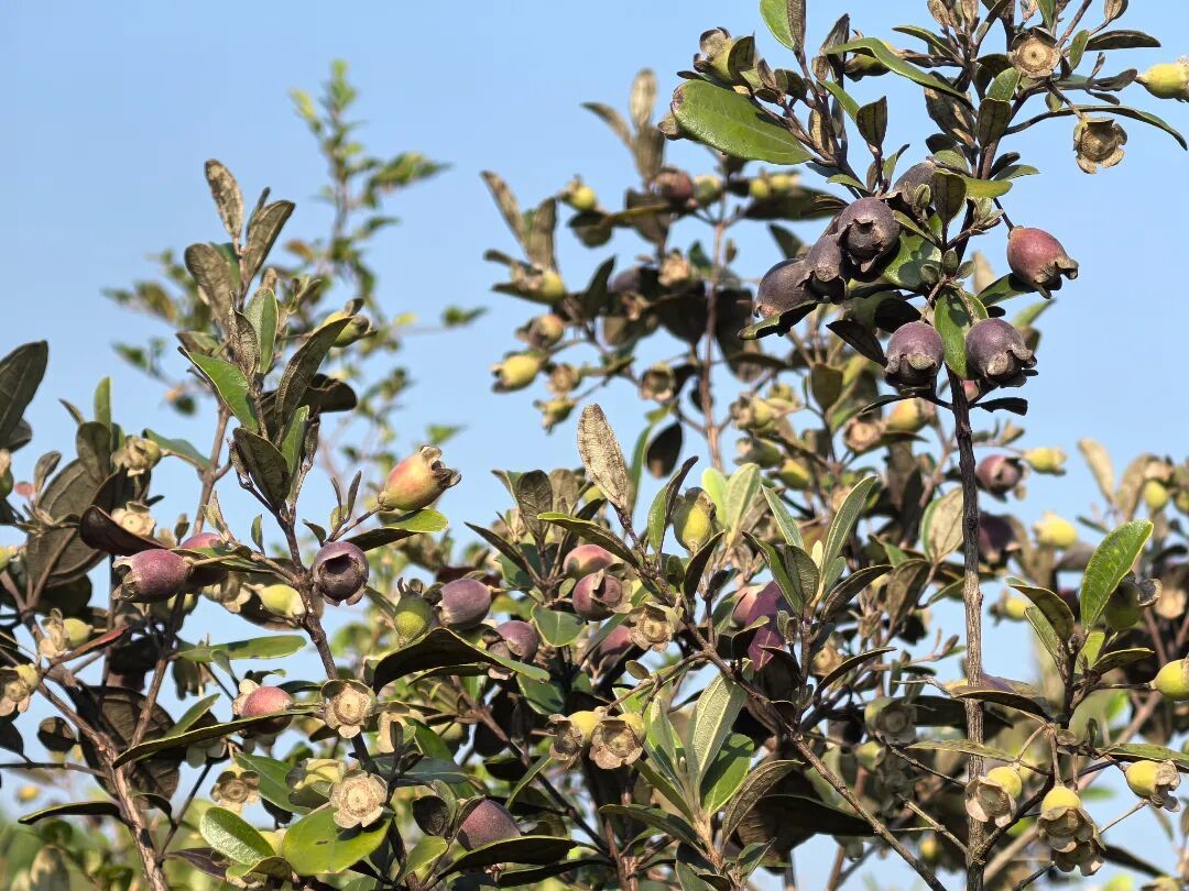 来到山野,漫山遍野的山稔子,瞬间勾起了人们满满的儿时回忆。山稔子作为岭南特有野果,常见于两广丘陵坡地,是酸性土壤的“指示植物”。在始兴的山坡上,齐人高的山稔子树挂满果实,青、红、紫三色相间,宛如缀在枝头的彩色玛瑙。清晨时分,已有市民结伴骑车而来,穿梭在树丛间寻觅成熟的果子。