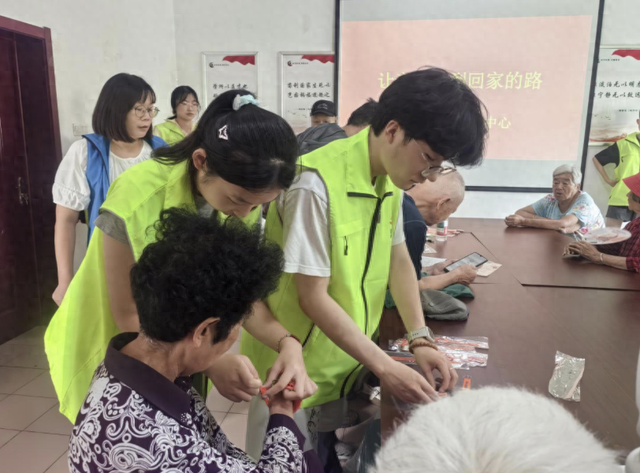 活动前期,网格员首先对辖区内的老年人进行筛选,对符合条件的老年人进行电话通知,特别是易走失风险较高的老人,告知他们此次活动的意义。活动现场,活动负责人首先讲解了手环的主要作用,随后,志愿者们便分工合作,登记信息并耐心的为老人佩戴手环,并详细的讲解手环的注意事项。老人们戴上手环后,脸上洋溢着幸福的笑容。
