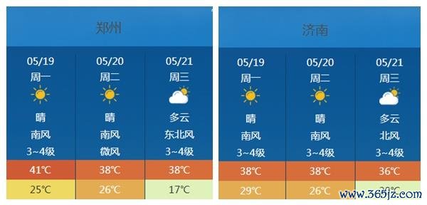 省会城市中,西安明起3天最高气温或达39℃,太原明后天最高气温38℃以上,都将挑战当地5月最高气温纪录。济南、郑州明起3天将连续遭遇高温,郑州明天最高气温还可能达到41℃。