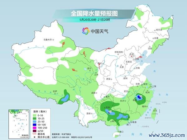 今天夜间到明天,随着南风急流增强,江西东部和南部、浙江南部、福建西部和北部、广西、广东北部和西部、云南东部等地部分地区有大到暴雨,其中,广西西南部和中部、广东北部、福建北部等地部分地区有大暴雨。